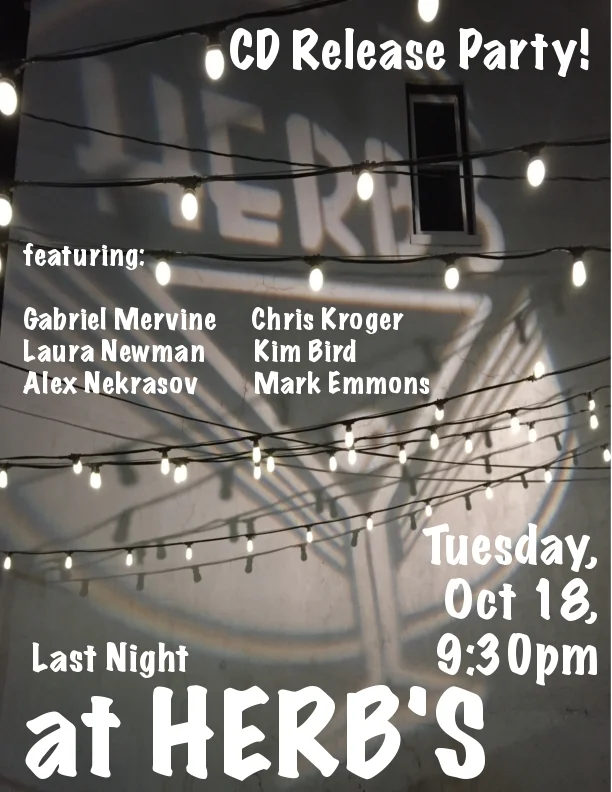 CHRIS KROGER CD Release Party!!! Tuesday, October 18, 2016 9:30 PM 21:30 Wednesday, October 19, 2016 1:30 AM 01:30 Google Calendar ICS CHRIS KROGER CD RELEASE PARTYFeaturing:Gabriel MarvinLaura NewmanAlex NekrasovKim BirdJill Fredericksen